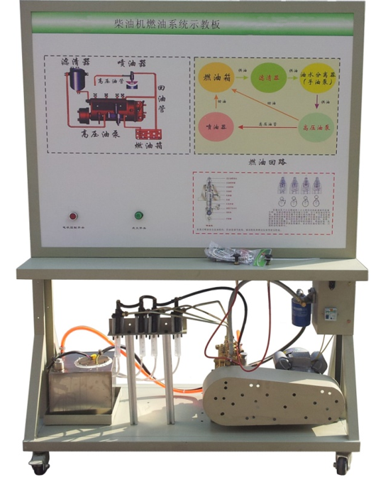 2.示教板面板采用耐創(chuàng )擊、耐污染、防火、防潮的高級鋁塑板,表面經(jīng)特殊工藝噴涂底漆處理;面板打印有永不褪色的彩色電路圖與工作原理示意圖;學(xué)員可直觀(guān)對照電路圖和實(shí)物,認識和分析柴油發(fā)動(dòng)機燃油噴射系統的工作原理。