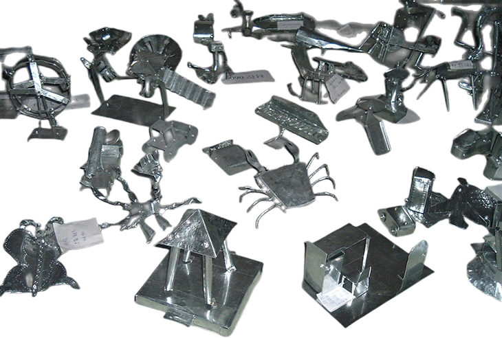 該教具可用來(lái)對0.5mm及以下的金屬薄板進(jìn)行沖孔、1mm及以下的金屬薄板折彎和壓型。學(xué)生可自行構思、設計、完成一些小制作,如小汽車(chē)、卡車(chē)、飛機、文件柜等等。在進(jìn)行小制作的過(guò)程中,學(xué)生不僅了解了沖壓模具的類(lèi)型、模具的安裝、調試和板料沖壓的全過(guò)程等有關(guān)知識,更重要的是還能激發(fā)學(xué)生的創(chuàng )新思維和創(chuàng )新能力。該教具采用手動(dòng)方式,無(wú)須動(dòng)力源,學(xué)生操作實(shí)習安全可靠。另外,采用圓形齒條導向,大大提高了教具的沖折精度。
