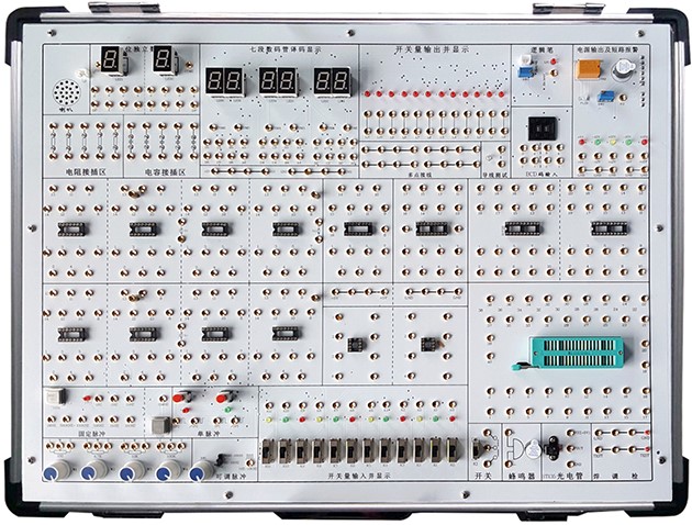 新型數字電路實(shí)驗箱,數字電路實(shí)驗箱由鋁木合金箱體、開(kāi)關(guān)電源、常用信號源和實(shí)驗電路區組成。其中實(shí)驗電路區采用全開(kāi)放模式,可根據需求靈活配置實(shí)驗電路,以滿(mǎn)足不同層次學(xué)生的教學(xué)實(shí)驗要求。