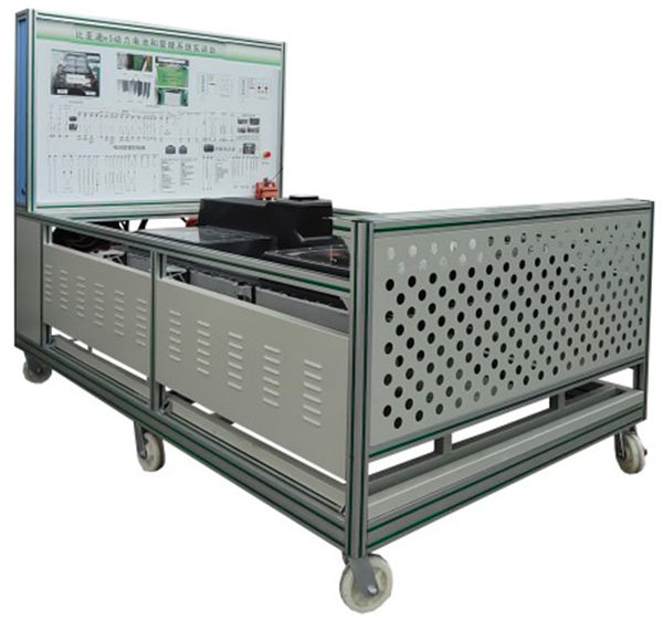 (比亞迪e5 EV450純電動(dòng)汽車(chē)) 鋰動(dòng)力電池組、電池管理系統BMS、、維修開(kāi)關(guān)、輔助蓄電池(12V45AH)、高壓配電箱、漏電傳感器、車(chē)載充電機、國標充電插座與充電槍、直流接觸器(包含充電繼電器、總正繼電器、總負繼電器、預充繼電器)、急停開(kāi)關(guān)與電源總開(kāi)關(guān)、一體化全鋁合金型材搭建的移動(dòng)臺架(1500×700×1700mm ,帶自鎖腳輪裝置,帶安裝檢測端子的原理面板1448×940mm)、故障考核系統、設備操作說(shuō)明書(shū)。