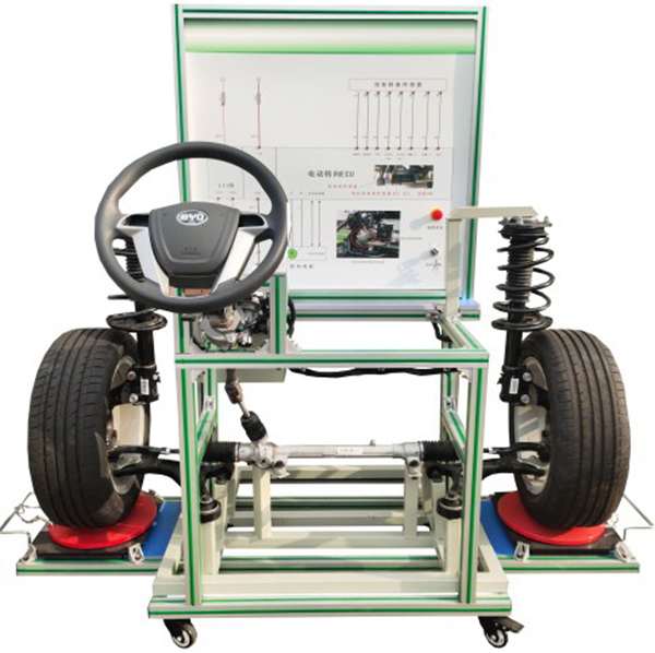 (比亞迪e5 EV450純電動(dòng)汽車(chē)) 動(dòng)力轉向控制電腦(ECU)、診斷座、點(diǎn)火開(kāi)關(guān)、前橋懸掛機構、方向盤(pán)、轉向柱、電動(dòng)助力方機、轉向拉桿、前左右車(chē)輪總成、信號模擬裝置、扭矩傳感器、扭矩傳感器信號電壓數顯表、故障模擬與排除裝置、前輪左右轉盤(pán)、一體化全鋁合金型材搭建的移動(dòng)臺架(1500×1000×1700mm ,帶自鎖腳輪裝置,帶安裝檢測端子的原理面板948×898mm)、設備操作說(shuō)明書(shū)。