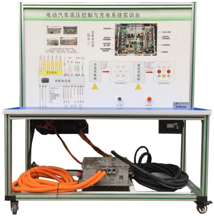 國標充電槍與充電座、(比亞迪E5)高壓配電箱(帶各類(lèi)高壓繼電器)、漏電傳感器模塊、絕緣傳感器模塊、安全維修塞模塊、漏電模擬操作單元、高壓安全系統操作單元、操作控制臺、訓練控制按鈕、直流接觸器(包含充電繼電器、總正繼電器、總負繼電器、預充繼電器)、一體化全鋁合金型材搭建的移動(dòng)臺架(1500×700×1700mm 帶自鎖腳輪裝置,帶安裝檢測端子的原理面板,面板1448×940mm)、設備操作說(shuō)明書(shū)。