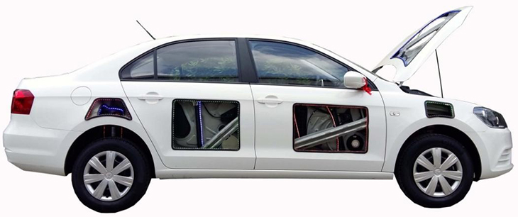 (1)整車(chē)電控系統實(shí)訓臺用于汽車(chē)電控系統的教學(xué)與實(shí)訓,包含汽車(chē)電控系統六大部分:發(fā)動(dòng)機電控系統、自動(dòng)變速器、ABS系統、SRS系統、音響系統、空調系統,燈光與車(chē)身電器系統;