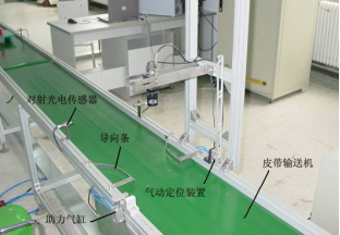 由皮自動(dòng)化輸送線(xiàn)系統帶輸送機和轉角輸送機組成O型輸送系統,框架采用鋁合金框架,其結構簡(jiǎn)單、重量輕,安裝、使用、維護方便。每條皮帶運輸機由鋁合金支架、皮帶、輥筒、電機與減速器組成,并且輸送機上裝有位置傳感器。轉角輸送部分由直流電機+減速器驅動(dòng),所有輸送機速度可調,系統中要有一條變頻調速輸送線(xiàn)。