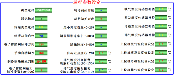 11)顯示界面上29 路參數控制參數設置/查詢(xún):控制器內所有與控制相關(guān)的溫度參數、時(shí)間參數、控制參數、等29個(gè)參數都可以調整,以適應制冷/熱泵/冷庫/水機等設備。