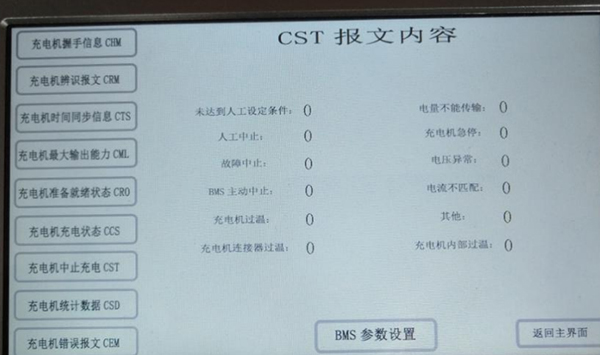 9.3.充電機CTS,CRM, CHM ,CML,CRO,CCS,CST,CSD,CEM報文狀態(tài)實(shí)時(shí)顯示。