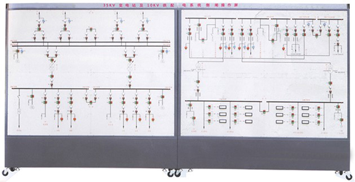 "35kV變電站及10kV供配電系統倒閘操作屏"是針對變電站倒閘操作而專(zhuān)門(mén)研制的實(shí)訓裝置。本系統含35kV、10kV和0.4kV三個(gè)電壓等級:35kV具有4路進(jìn)線(xiàn),雙母帶聯(lián)絡(luò );10kV側采用單母分段,兩入兩出,環(huán)網(wǎng)供電;0.4kV側采用單母分段,并具有備用發(fā)電系統。在此典型35kV變電站模型上,學(xué)生可以進(jìn)行各種工況下的倒閘操作。變電站的電壓等級和結線(xiàn)方式也可以根據用戶(hù)要求設計。因此本裝置適合各類(lèi)職業(yè)院校供配電類(lèi)、電力公司、職業(yè)技能培訓部門(mén)等機構的培訓、考核。
