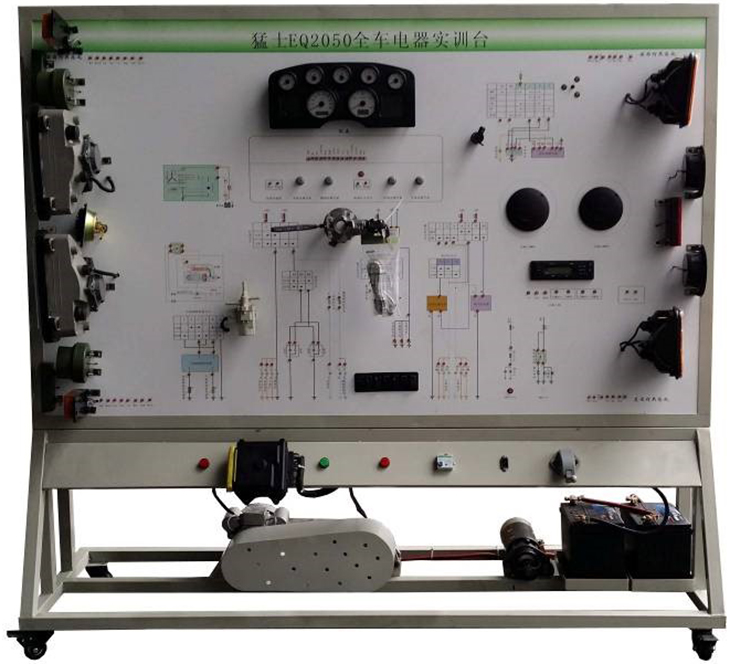 東風(fēng)2050全車(chē)電器實(shí)訓設備采用 全新猛士EQ2050柴油機整車(chē)電器實(shí)物為基礎,充分展示汽車(chē)儀表系統、燈光系統、雨刮系統、喇叭系統、發(fā)動(dòng)機電器系統、起動(dòng)系統和充電系統等汽車(chē)電器各系統的組成結構和工作過(guò)程。