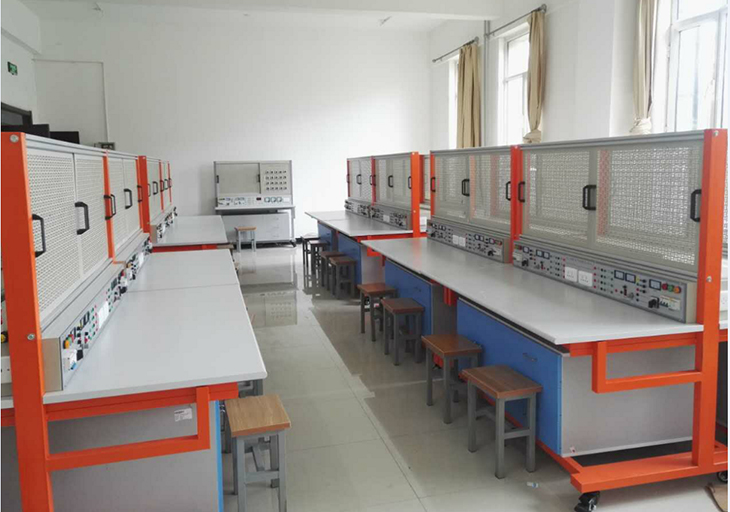 電氣裝配實(shí)訓臺由實(shí)訓屏(內置電源)、實(shí)訓桌、實(shí)訓儲物柜三大部分組成。