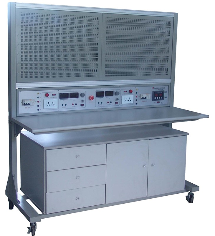 本實(shí)訓臺由實(shí)訓屏(內置電源)、實(shí)訓桌、實(shí)訓儲物柜三大部分組成。