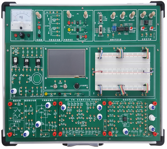 含機箱、工作電源、常用模擬信號源、實(shí)驗電路區和分立元件和測量?jì)x器等 |