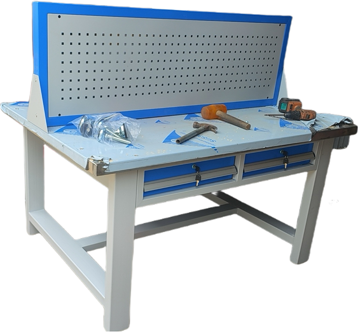 1、鉗工桌采用標準的組合式拆裝結構、構件互換一致性好。具有雙面四工位、四個(gè)大容積的暗鎖抽屜、可調重型墊腳。以利于運輸、安裝、存儲放置、適應于各種不同實(shí)訓場(chǎng)地。