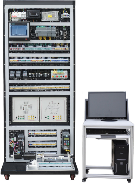 工業(yè)自動(dòng)化網(wǎng)絡(luò )控制實(shí)訓平臺、工作臺以網(wǎng)孔架為基礎實(shí)訓單元,仿真企業(yè)真實(shí)環(huán)境,可開(kāi)展PLC系統基礎模塊連接實(shí)訓。該工作臺采用單面實(shí)訓方式,實(shí)訓區主要由電源單元、PLC單元、PLC學(xué)習箱單元、基礎實(shí)訓單元、擴展實(shí)訓區(伺服控制小車(chē)運動(dòng)實(shí)訓單元、步進(jìn)電機單元和變頻器單元)六大部分組成。