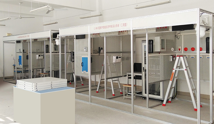 由鋁合金型材框架和安裝布線(xiàn)網(wǎng)孔板組成3120mm×1580mm×2310mm(長(cháng)×寬×高),分為智能大樓(小區)、管理中心,器件采用自攻螺絲和工程塑料卡件配合安裝。 |