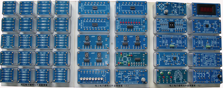 提供電工電子透明實(shí)訓模塊,可以完成直流電路、模擬電子技術(shù)、數字電子技術(shù)和電子綜合應用實(shí)訓項目。實(shí)訓模塊面板采用PCB板制作而成,器件和信號接口均已引至板上的專(zhuān)用插座,實(shí)訓模塊有四個(gè)彈性插腳,與專(zhuān)用實(shí)訓孔板配套使用。