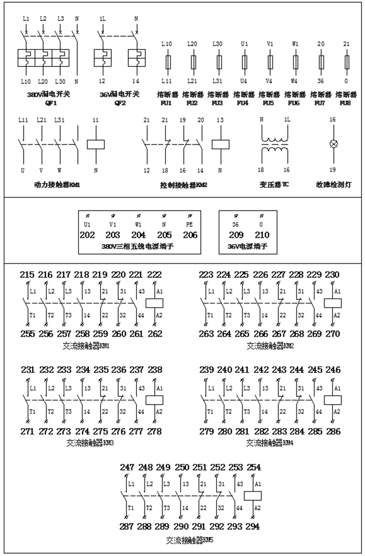 (1)額定輸入電壓:AC380V±5%(三相五線(xiàn)制),控制電壓:AC36V。