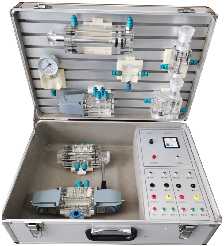 3、箱子集元件元件、液壓泵站、調速電機及電氣控制部分為一體箱,教師可方便的將設備帶入課堂進(jìn)行現場(chǎng)演示教學(xué)和實(shí)物講解。