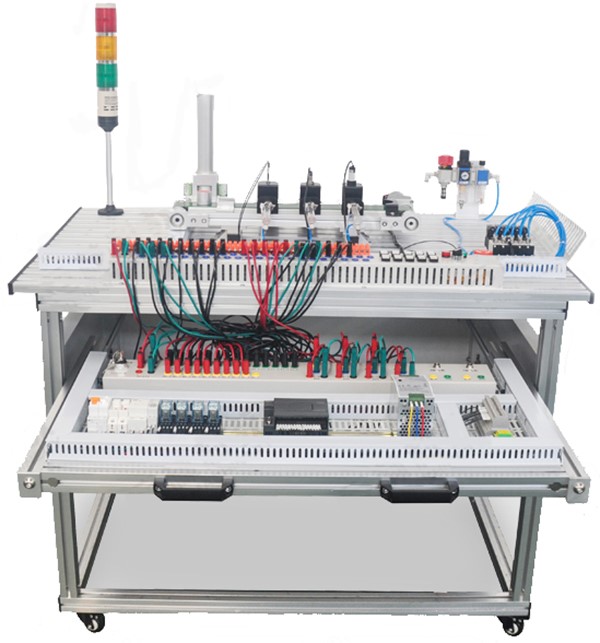 電子電工及PLC實(shí)訓室設備是機電相關(guān)專(zhuān)業(yè)學(xué)生在電子及工業(yè)控制領(lǐng)域的重要實(shí)訓實(shí)踐教學(xué)場(chǎng)所,同時(shí)也可以為其他城軌機電設備相關(guān)課程實(shí)踐提供控制平臺。電子電工與PLC實(shí)訓室配置有西門(mén)子公司S7-1200系列PLC作為控制核心,同時(shí)配套有流水燈、港口起重機、十字路交通燈、三層電梯、天塔之光等預設實(shí)訓模塊。其附帶有7英寸彩色觸摸屏,通信下載編程電纜,觸摸屏與PLC通信電纜,開(kāi)發(fā)組態(tài)軟件等配套設備,構建了完全真實(shí)的PLC項目開(kāi)發(fā)環(huán)境,便于學(xué)生演練PLC項目開(kāi)發(fā)的全套流程。同時(shí),實(shí)訓設備外掛了電子實(shí)訓模塊,可供學(xué)生進(jìn)行電子相關(guān)實(shí)訓。該實(shí)訓室利用多媒體教學(xué)、網(wǎng)絡(luò )教學(xué)等先進(jìn)手段,將復雜知識點(diǎn)簡(jiǎn)單化,將實(shí)訓內容與工作任務(wù)融合為一,實(shí)現了一體化教學(xué)的目的。