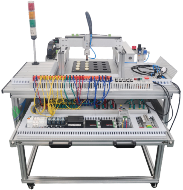 電工電子與PLC實(shí)訓臺通過(guò)上述實(shí)訓設備,學(xué)生可在實(shí)訓室中完成PLC的基本指令編程練習、三相異步電動(dòng)機控制練習、PLC觸摸屏控制設計練習以及如流水燈控制、起重機控制、十字路交通燈控制、三層電梯控制等實(shí)際設計項目的練習。同時(shí),通過(guò)外掛電子實(shí)訓設備,學(xué)生可以通過(guò)實(shí)訓驗證基爾霍夫定律、疊加原理、戴維南諾頓定理、雙口網(wǎng)絡(luò )、互易定理等電子相關(guān)定理。電工電子電拖PLC綜合實(shí)訓考核裝置主要承擔《電工技術(shù)實(shí)訓》、《PLC及其應用》、《模擬電子技術(shù)實(shí)訓》、《數字電路實(shí)訓》、《電力拖動(dòng)實(shí)驗實(shí)訓》、《電力拖動(dòng)實(shí)驗實(shí)訓》、《PLC可編程控制器基礎電路實(shí)訓