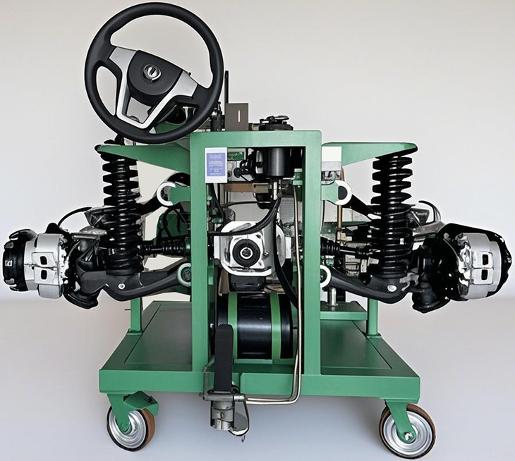 制動(dòng)轉向懸架系統實(shí)訓臺主要由CSK181新品前橋實(shí)物(包括輪邊減速器、懸架) 和中后橋的固定卡鉗和制動(dòng)盤(pán)、轉向系統等附件組成。