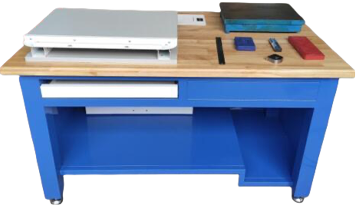 規格:1400×700×800mm,尺寸偏差±10mm(桌體靜電噴塑顏色:中藍色整體采用整裝鋼木結構,桌面為整體平整設計,有幾個(gè)部分組成,可傾角的繪圖桌面,桌面右側為大理石平臺(300*400*25mm);繪圖桌面下為鍵盤(pán)抽,右支架腳板旁邊為主機托板。