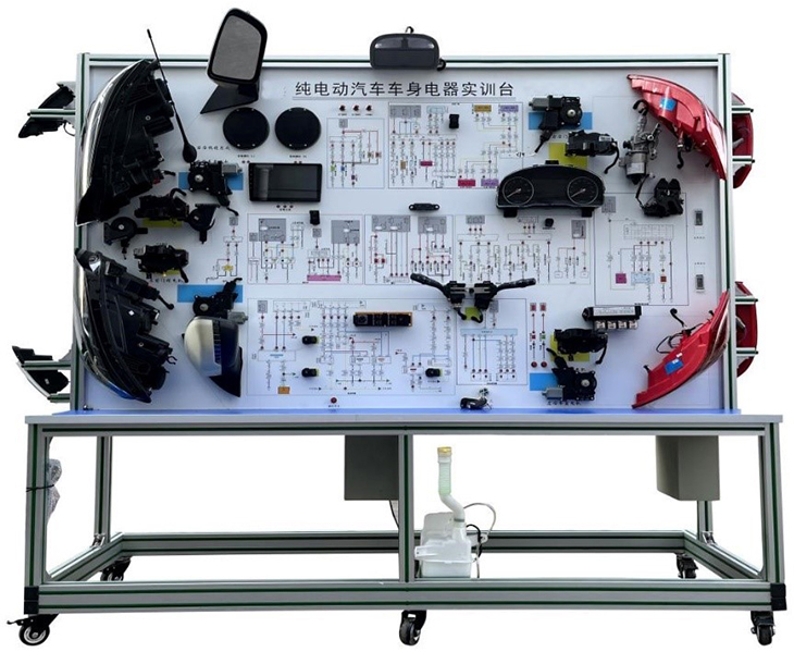 純電動(dòng)汽車(chē)車(chē)身電器實(shí)訓臺\該設備采用(高速)純電動(dòng)汽車(chē)車(chē)身電器系統實(shí)物為基礎,充分展示純電動(dòng)汽車(chē)儀表系統、燈光系統、雨刮系統、喇叭系統、低壓電源電器系統、電動(dòng)車(chē)窗系統、電動(dòng)門(mén)鎖、音響系統等低壓電器系統的組成結構和工作過(guò)程。適合于各類(lèi)院校對純電動(dòng)車(chē)車(chē)身電器系統理論和維修實(shí)訓的拆裝與維護、結構與原理認知、系統操作、功能動(dòng)態(tài)演示、故障檢測與診斷教學(xué)需要。