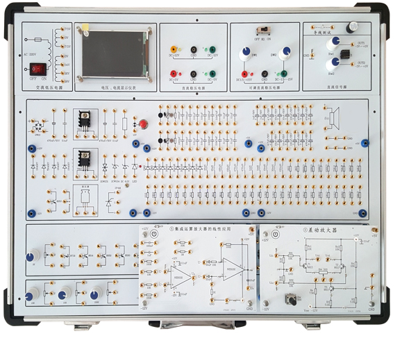 創(chuàng )新型模塊化模擬電路實(shí)驗箱由全鋁合金箱體、高性能線(xiàn)性電源和實(shí)驗電路板組成。其中實(shí)驗電路既可以采用固定功能模塊方式,也可以自行搭建實(shí)驗電路,電路原理和元器件符號清晰,實(shí)驗用元器件全部焊裝在線(xiàn)路板的反面,安全可靠,不易損壞。本實(shí)驗箱適用于本專(zhuān)院校所有電類(lèi)和非電類(lèi)專(zhuān)業(yè)《模擬電子技術(shù)》、《電子線(xiàn)路》等課程的實(shí)驗教學(xué)。