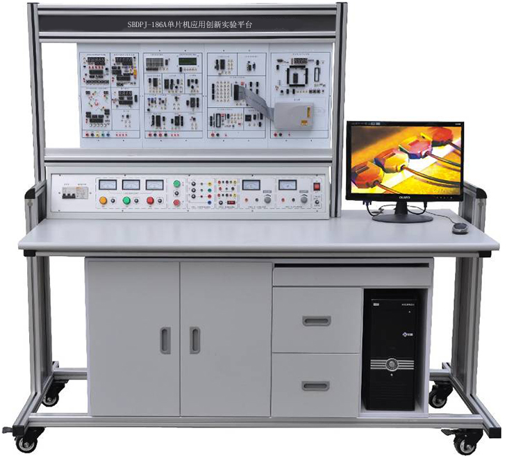 單片機應用創(chuàng )新實(shí)驗裝置由控制屏、實(shí)驗掛箱、實(shí)驗桌組成,通過(guò)本實(shí)驗臺可完成單片機的接口擴展、數據采集、數據顯示、鍵盤(pán)控制、定時(shí)器、打印機接口等實(shí)驗,配備有仿真器。