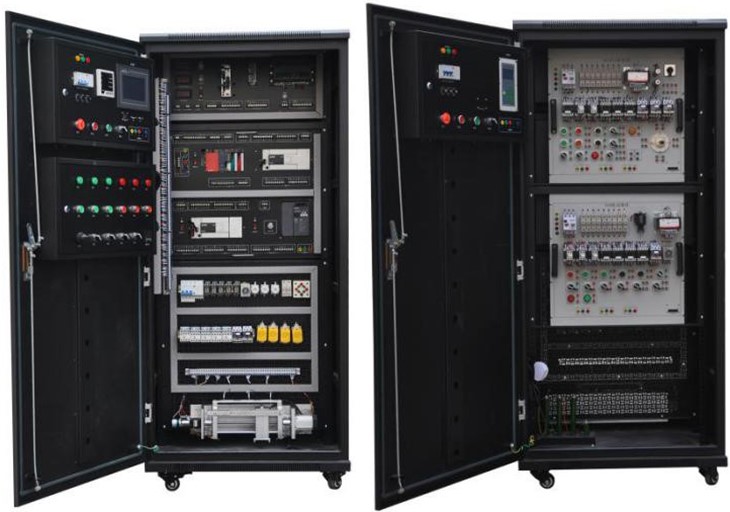 1.本裝置是由控制柜、受控對象等組成一個(gè)完整系統,具有占地面積小、操作方便、可移動(dòng)、內部安裝有照明設施、操作面板,各控制點(diǎn)和通訊接口均引出到專(zhuān)用的接線(xiàn)板上,使實(shí)訓更加便捷。