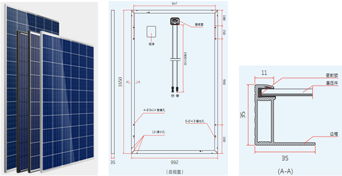 太陽(yáng)能電池組為多晶硅或單晶硅,是由高效晶體硅太陽(yáng)能電池片、超白布紋鋼化玻璃、EVA、透明TPT背板以及鋁合金邊框組成。
