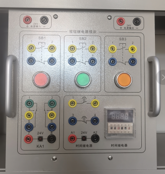 配置: 1、采用鋼制實(shí)訓模塊為主機,配置鋁質(zhì)面板,包含多組中間繼電器、指示燈、按鈕等模塊。 2、控制電路使用彈簧式端子