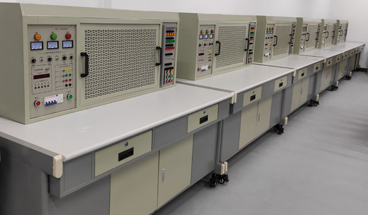 2、操作臺只需三相四線(xiàn)的交流電源即可投入使用,占地面積小,實(shí)訓器材集中在儲存柜內,易管理、規劃化程度高。