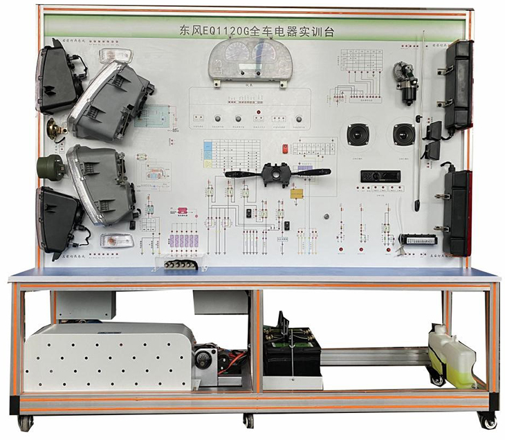 該設備采用全新 東風(fēng)EQ1120GA2柴油機整車(chē)電器實(shí)物為基礎,充分展示汽車(chē)儀表系統、燈光系統、雨刮系統、喇叭系統、發(fā)動(dòng)機電器系統、起動(dòng)系統和充電系統等汽車(chē)電器各系統的組成結構和工作過(guò)程。