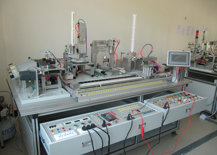自動(dòng)生產(chǎn)線(xiàn)實(shí)訓裝置由由鋁合金導軌式實(shí)訓臺、典型的機電一體化設備的機械部件、PLC模塊、變頻器模塊、按鈕模塊、電源模塊、模擬生產(chǎn)設備實(shí)訓模塊、接線(xiàn)端子排和各種傳感器、計算機等組成。整體結構采用開(kāi)放式和拆裝式,實(shí)訓裝置用于機械部件組裝,可根據現有的機械部件組裝生產(chǎn)設備,也可添加機械部件組裝其他生產(chǎn)設備,使整個(gè)裝置能夠靈活的按教學(xué)或競賽要求組裝具有生產(chǎn)功能的機電一體化設備。模塊采用標準結構和抽屜式模塊放置架,互換性強;按具有生產(chǎn)性功能和整合學(xué)習功能的原則確定模塊內容,使教學(xué)或競賽時(shí)可方便的選擇需要的模塊。設備需完全符合電工電子全國職業(yè)技能大賽所要求,同時(shí)還要求具有可拓展功能,可以組成更加大型的生產(chǎn)模擬系統,以配合各個(gè)用戶(hù)學(xué)校不同層次,不同專(zhuān)業(yè)的教學(xué)及培訓要求。