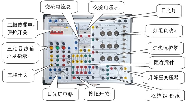 (4)三相燈組負載,每相可插入15W燈泡3只。