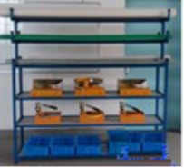 3、模塊中間模塊設計為貨架形式,配置有大量零件工具盒,適合安裝實(shí)訓使用。