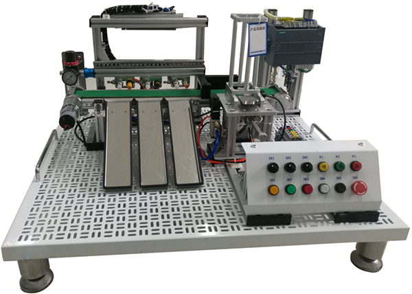 1.系統包含氣動(dòng)控制、電機傳動(dòng)、位置控制、傳感器檢測等內容,為實(shí)際工業(yè)現場(chǎng)生產(chǎn)設備的微縮裝置。要求基于多種傳感器的檢測的精確定位,實(shí)現對不同材質(zhì)、不同顏色物體的分揀。配有空氣壓縮機:靜音無(wú)油,工作電源AC220V±10% 50Hz,輸入功率≥0.68kW;公稱(chēng)容積≥24L,理論流量:≥116L/min,額定輸出氣壓0.7MPa。 2.系統由按鈕模塊、氣動(dòng)自動(dòng)上料模塊、傳輸線(xiàn)模塊和物料檢測及分揀模塊和輔助器件等組成。 3.要求每個(gè)模塊可以獨立使用,也可以聯(lián)動(dòng)控制組成自動(dòng)化分揀生產(chǎn)線(xiàn)。 4.按鈕模塊采用型材底座,安裝面板與桌面成45°夾角,包含急停按鈕1只,旋鈕開(kāi)關(guān)3只,自鎖帶燈按鈕黃、綠、紅各1只,所有按鈕和旋鈕觸點(diǎn)均引至端子接線(xiàn)排上;自動(dòng)上料模塊主體安裝在工業(yè)型材上,結構由鋁型材構成,方型工件庫1件,物料推出機構1件,光電傳感器,單缸氣缸1只,主要完成將工件庫中的工件依次推出;傳輸線(xiàn)模塊主要包含直流電機1臺,滾動(dòng)軸承4只,滾輪2只,傳輸帶1條,主要完成將工件輸送到分揀區;物料檢測及分揀模塊主要包含氣缸3個(gè),電感傳感器1只,電容傳感器1只;漫反射式光電傳感器1只,物料分揀槽3個(gè),完成物料的分揀工作。調壓閥主要安裝在型材底座支架上,含有手滑閥可控制氣路的通斷和壓力。輔助器件包含接線(xiàn)端子、物料、實(shí)訓導線(xiàn)、氣管等,模型控制所需的I/O點(diǎn)數必須與所配主機I/O點(diǎn)數相配套。氣缸使用范圍0.1-1MPa,工作溫度-15-60℃,活塞帶磁環(huán)可完成檢測;光電傳感器檢測范圍不小于1CM,輸出電流80-200MA,防護等級IP65,輸出方式NPN常開(kāi);傳感器檢測范圍不小于1CM,輸出電流80-200MA,防護等級IP65,輸出方式NPN常開(kāi)。 |